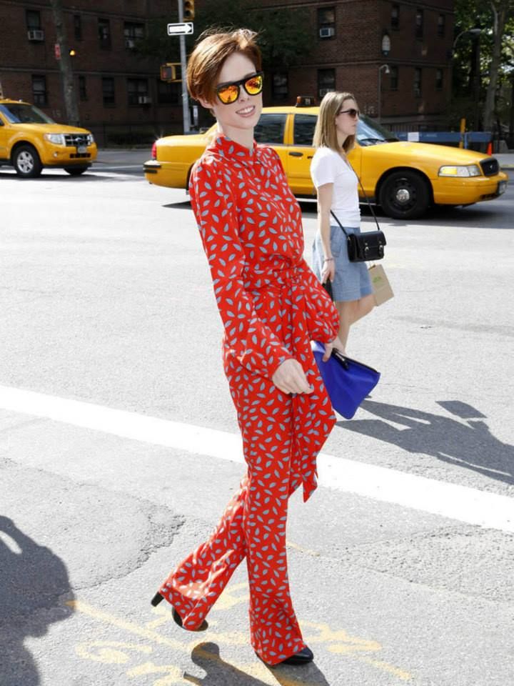 Một Coco Rocha trẻ trung, năng động và giản dị ở đời thường: áo blazer màu cam nổi bật, quần boyfriend jeans và giầy bốt cổ thấp đế bằng đầy thoải mái cho những ngày thu se lạnh, đạp xe quanh thành phố.